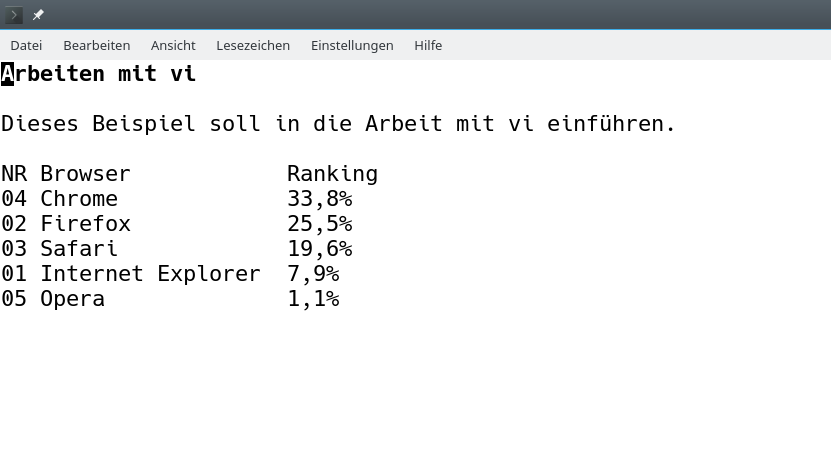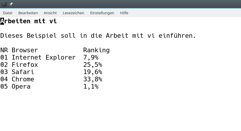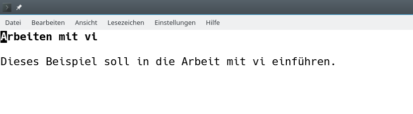 Dieses Beispiel soll in die Arbeit mit vi einführen.