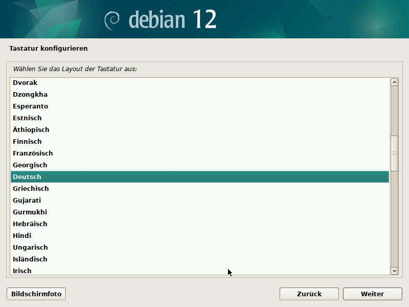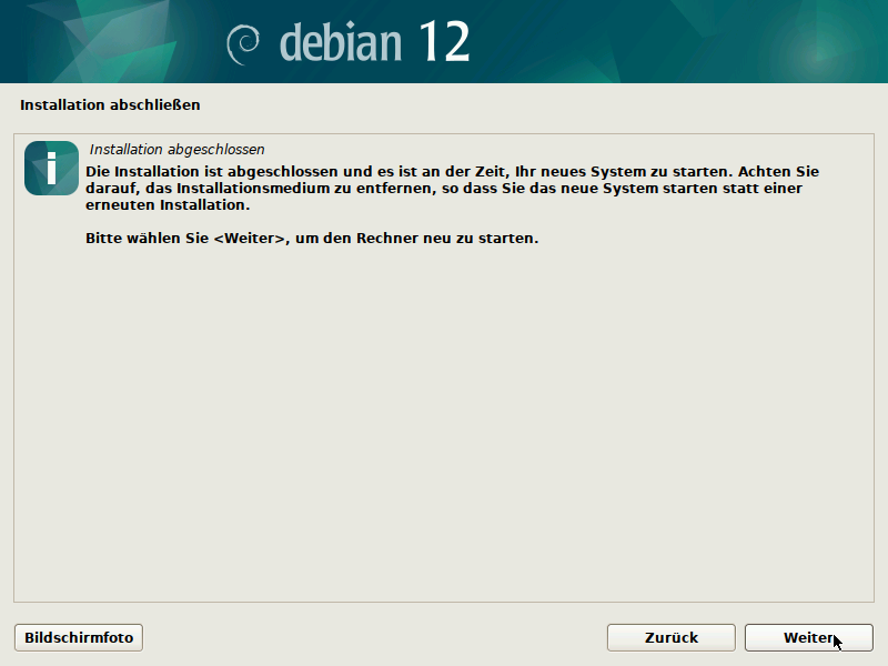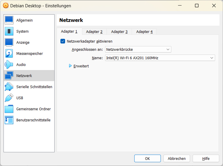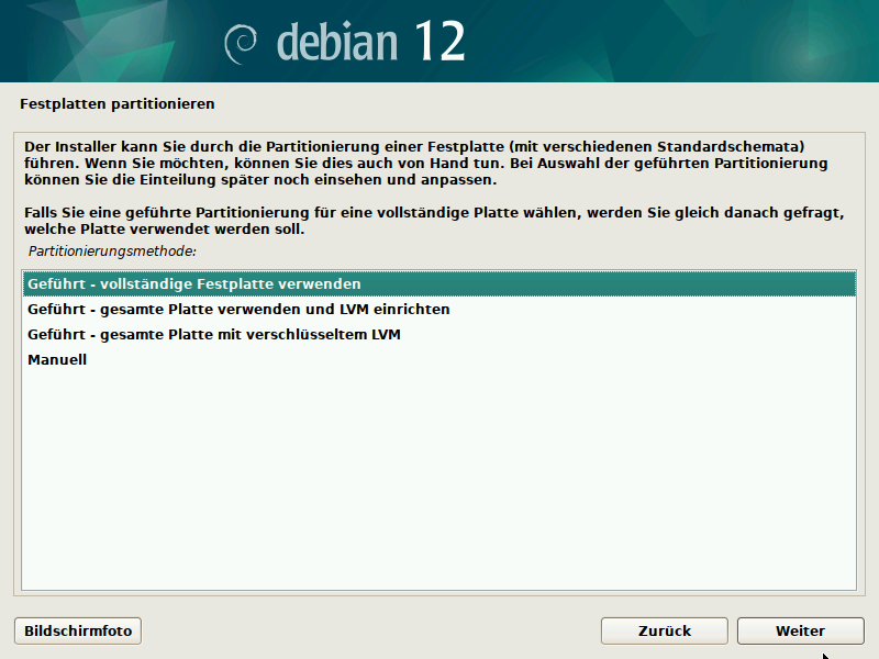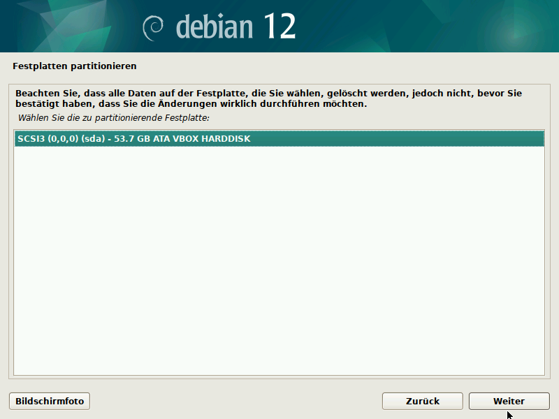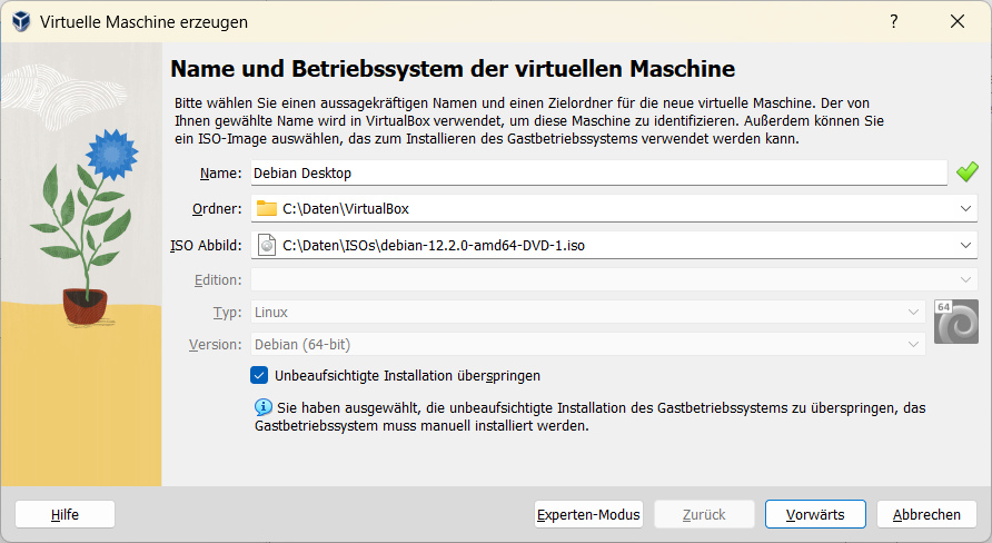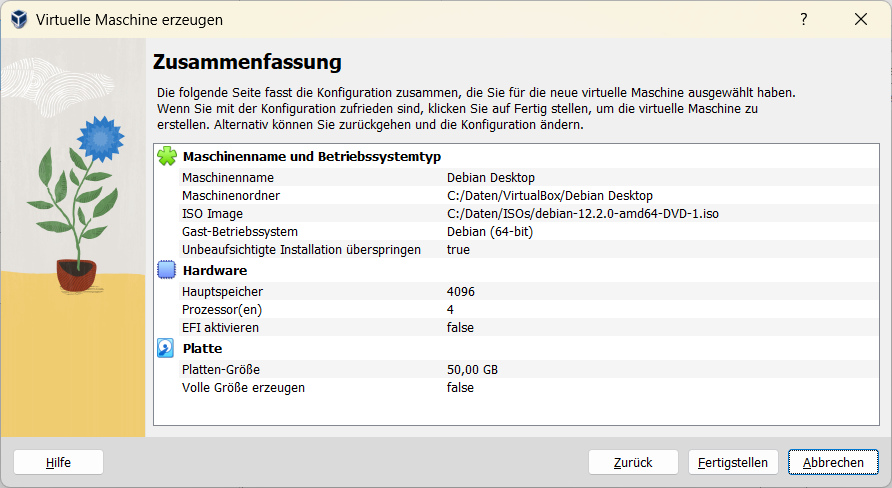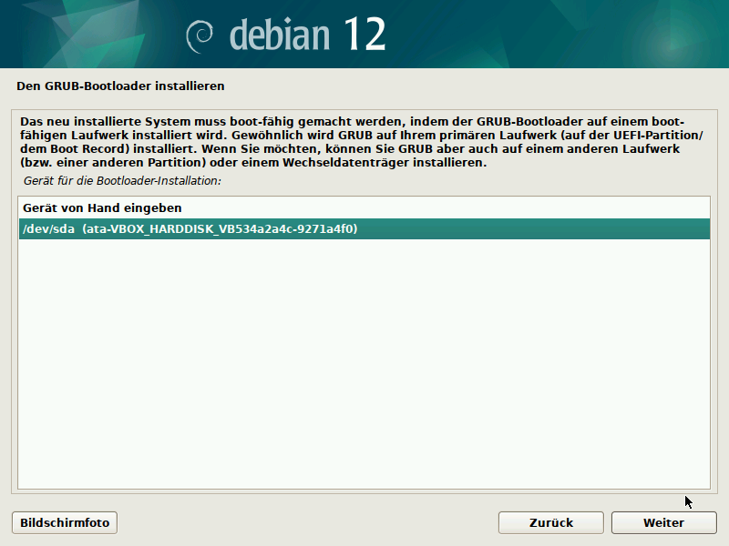 Starten Sie nun die virtuelle Maschine durch klick auf "Starten" oder durch einen Doppelklick auf die VM. Sie werden nun durch den Installationsprozess von Debian geleitet.