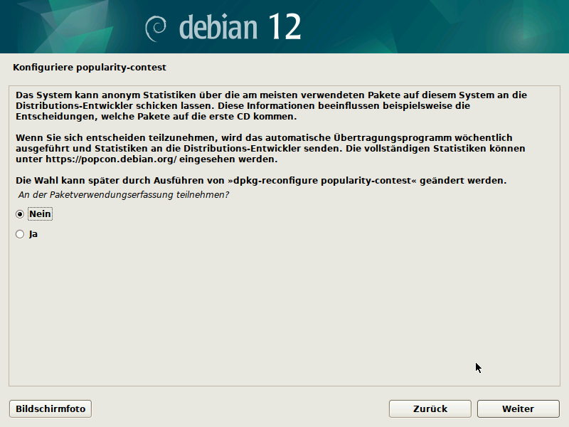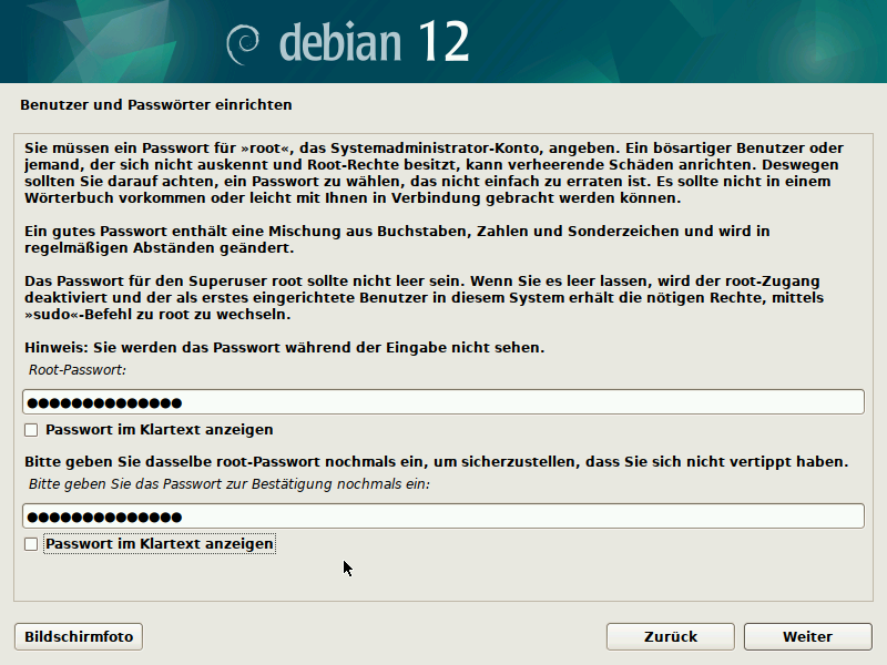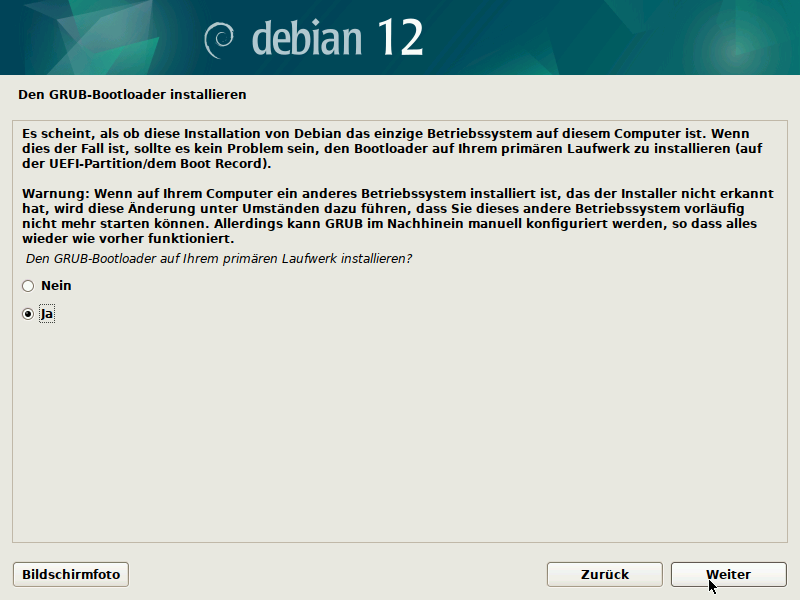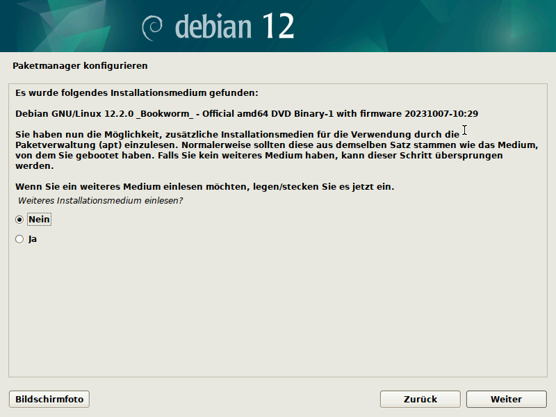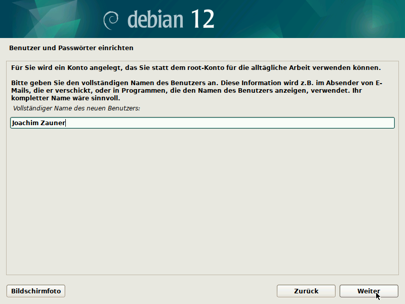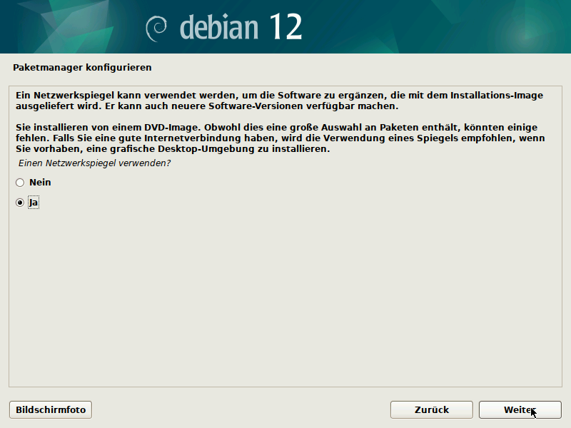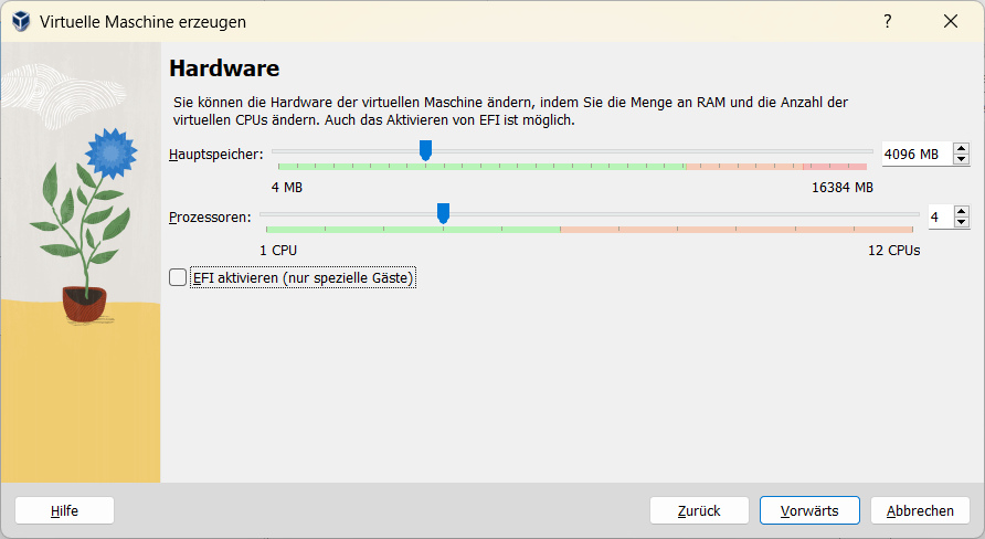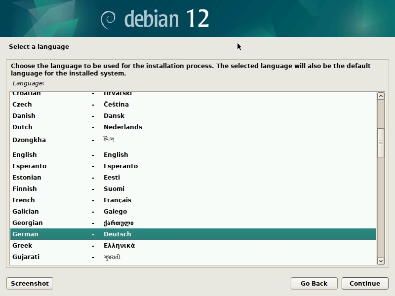 Starten Sie nun die virtuelle Maschine durch klick auf "Starten" oder durch einen Doppelklick auf die VM. Sie werden nun durch den Installationsprozess von Debian geleitet.